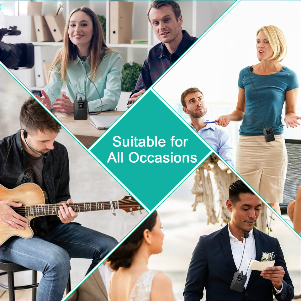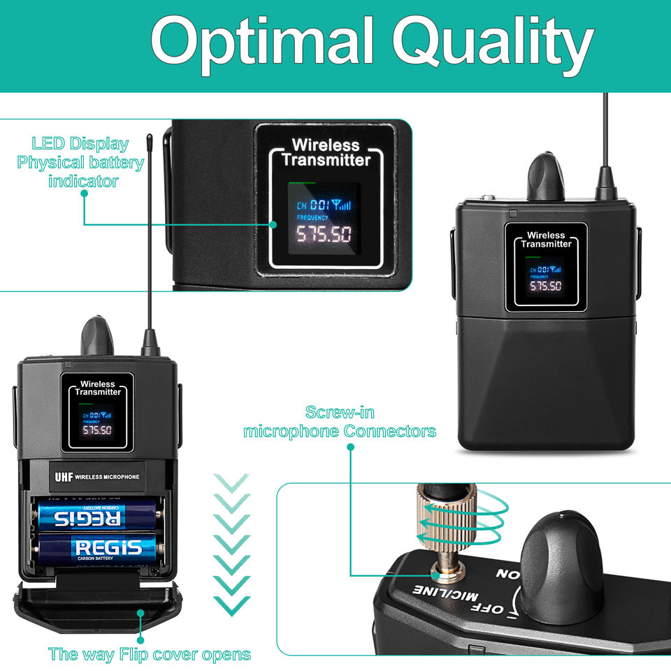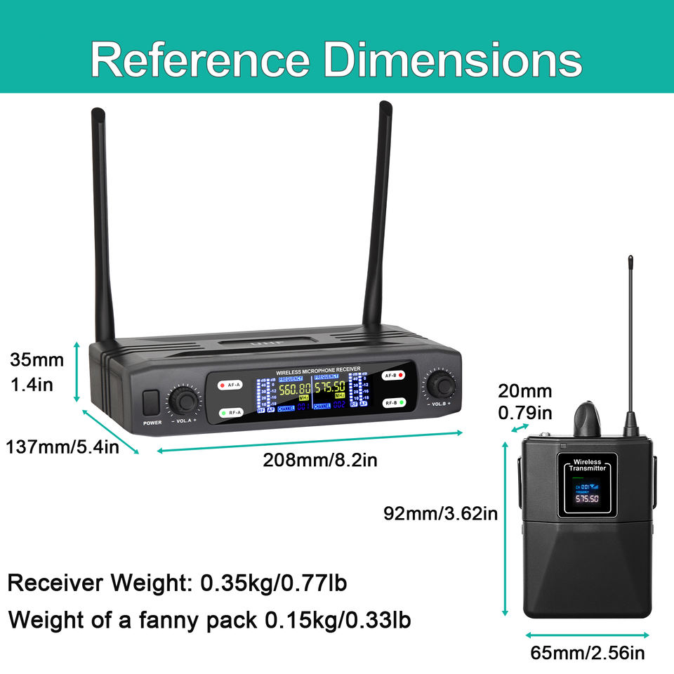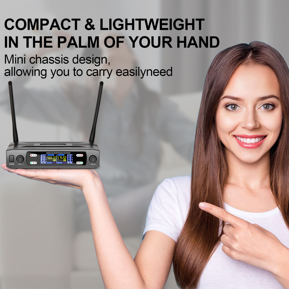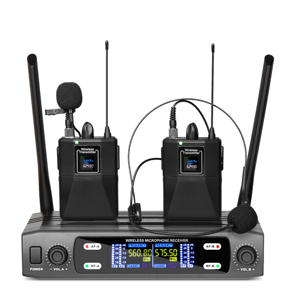 ไมโครโฟนไร้สาย X2 แบบคาร์ดิออยด์ 2 ช่องสัญญาณ พร้อมความถี่ UHF ปรับได้ ระยะไกล (165 ฟุต/50 เมตร) ตัดเสียงรบกวน ความไวสูง
