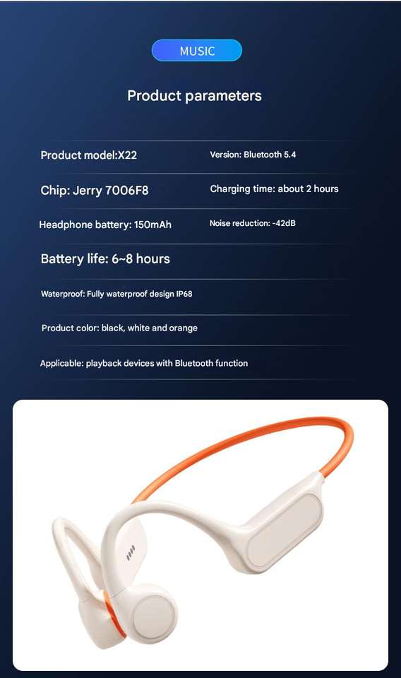 หูฟังบลูทูธแบบนำเสียงผ่านกระดูก X22สำหรับผู้เชี่ยวชาญด้านกีฬาหูฟังวิ่งใช้งานได้ยาวนาน