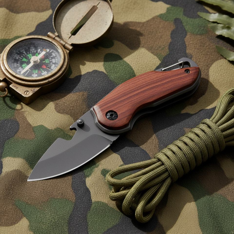 มีดพับอเนกประสงค์ X48 สแตนเลสสตีล ปรับแต่งได้ตามความต้องการ OEM สำหรับพกพา EDC กิจกรรมเอาตัวรอดกลางแจ้ง ตั้งแคมป์ DIY ด้ามไม้เกรด HK