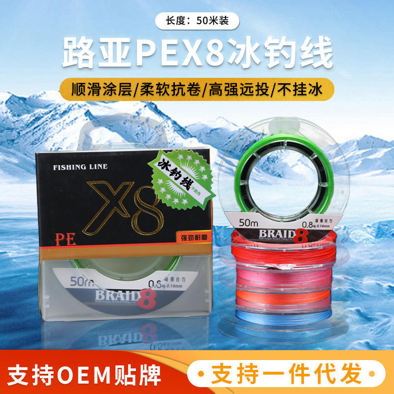สายเบ็ดตกปลาแบบถัก X8 ยาว 50 เมตร สาย PE สำหรับตกปลาในน้ำแข็ง ความแข็งแรงสูง หลายสี สายหลักสำหรับตกปลาทะเล