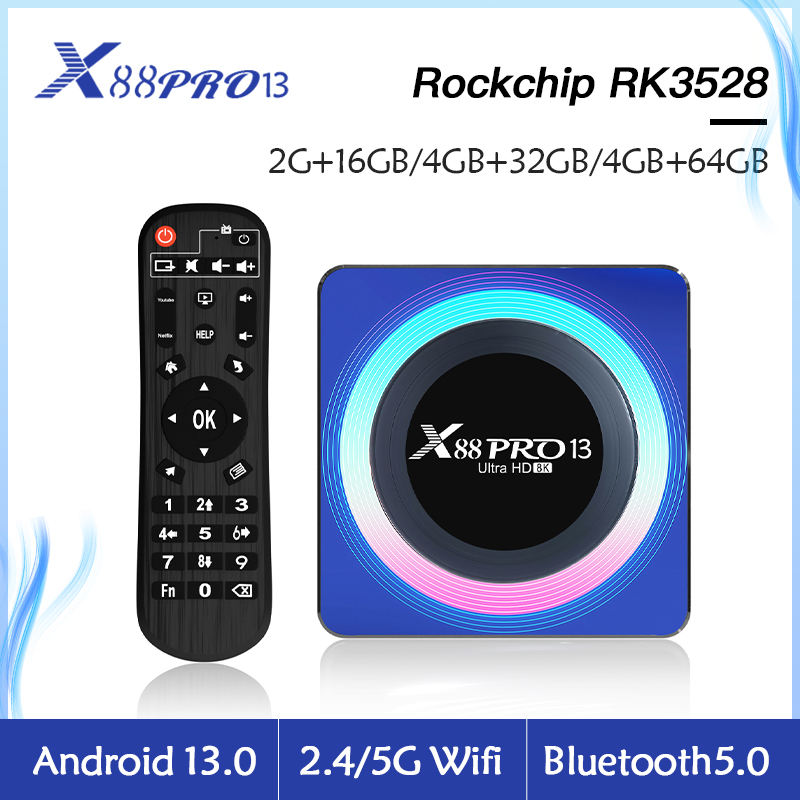 กล่องรับสัญญาณทีวี X88 Pro 13 ระบบ Android รองรับความละเอียด 4K UHD ชิปประมวลผล Amlogic Quad Core พร้อม WiFi และ Bluetooth