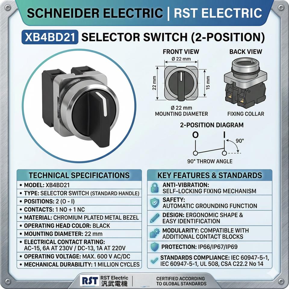 สวิตช์กดอัจฉริยะ Schneider รุ่น XB4BD21 มาตรฐาน IP53 รองรับ 10A 600VAC พร้อมขั้วต่อแบบสกรูและแบบเชื่อมต่อเร็ว