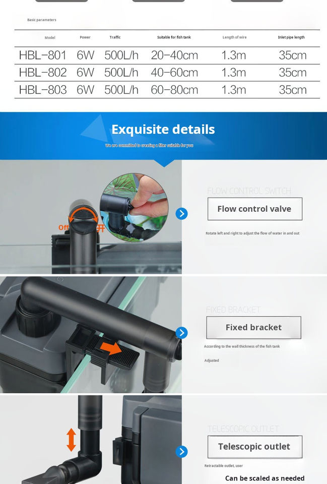 ปริมาณ 500 มล.: ปริมาณ 500 มล. ทำให้ตัวกรองสามารถจัดการกับน้ำในปริมาณที่มากพอสมควร ทำให้เหมาะสมสำหรับตู้ปลาขนาดกลาง