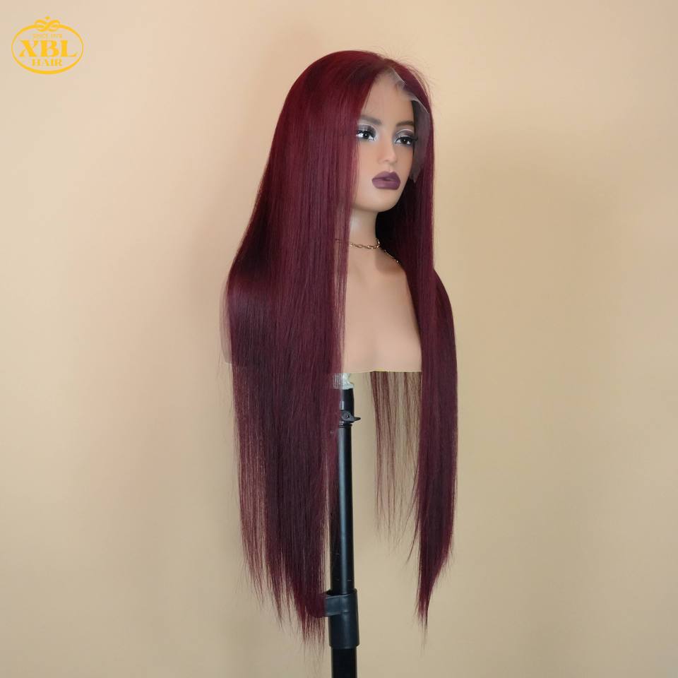 Xbl วิกผมตรงสีแดงเบอร์กันดีสำหรับมืออาชีพวิกผมลูกไม้ยาวตรง99J เบอร์กันดีแบบใส13X6