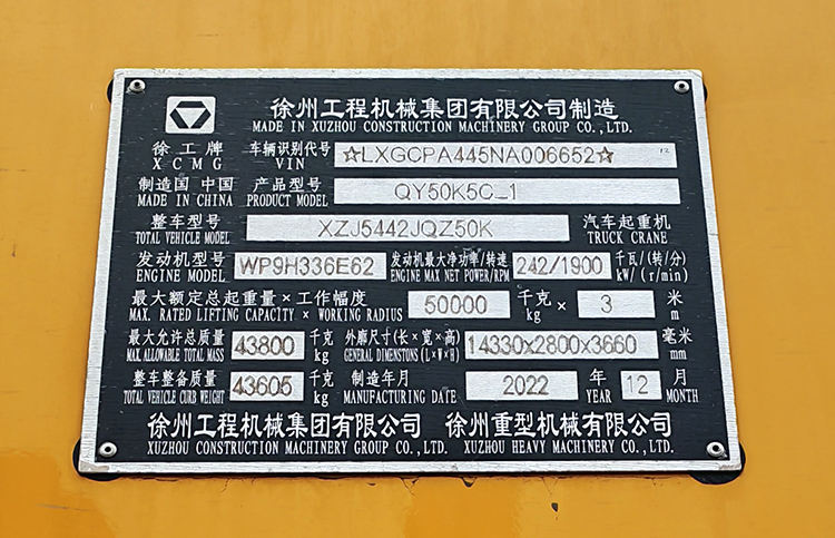 รถเครนเคลื่อนที่ XCMG มือสองของแท้ 50 ตัน รุ่น QY50K5C_1 รถเครนติดตั้งบนรถบรรทุกพร้อมบูมยืดไสลด์จากจีนสำหรับขาย