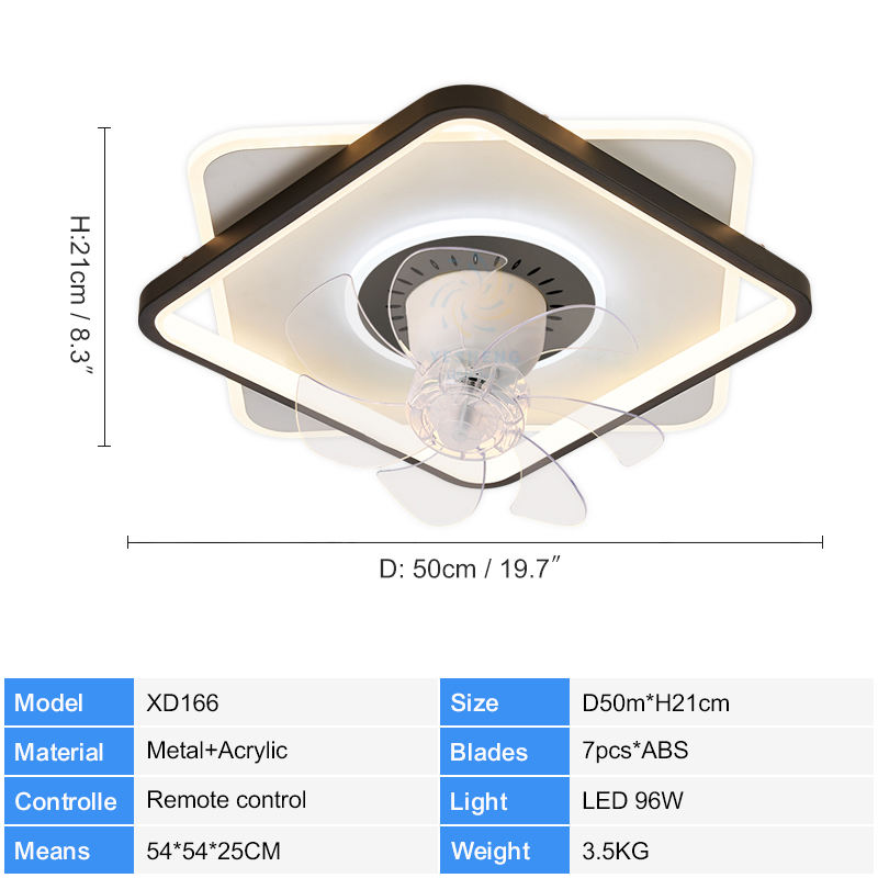 ไฟพัดลมติดเพดานแบบ XD166และรีโมทคอนโทรล LED หรี่แสงได้พร้อมพัดลมติดเพดานทันสมัยสำหรับห้องนอน