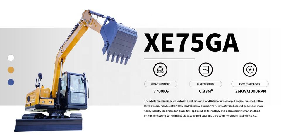 รถขุดขนาดเล็ก XE75GA พร้อมเทอร์โบชาร์จสำหรับเครื่องยนต์ ถังขนาด 0.33 ลูกบาศก์เมตร มอเตอร์ ปั๊ม และเกียร์เพื่อเพิ่มประสิทธิภาพการทำงาน