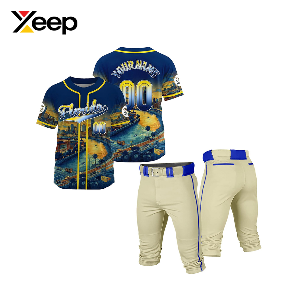 ชุดเบสบอลแบบกำหนดเอง XEEP รุ่น XC-BBU-46 ชุดกีฬาระบายอากาศได้ดี พิมพ์ลายด้วยความร้อน โพลีเอสเตอร์ 100% ดีไซน์คุณภาพสูง รับผลิตแบบ OEM