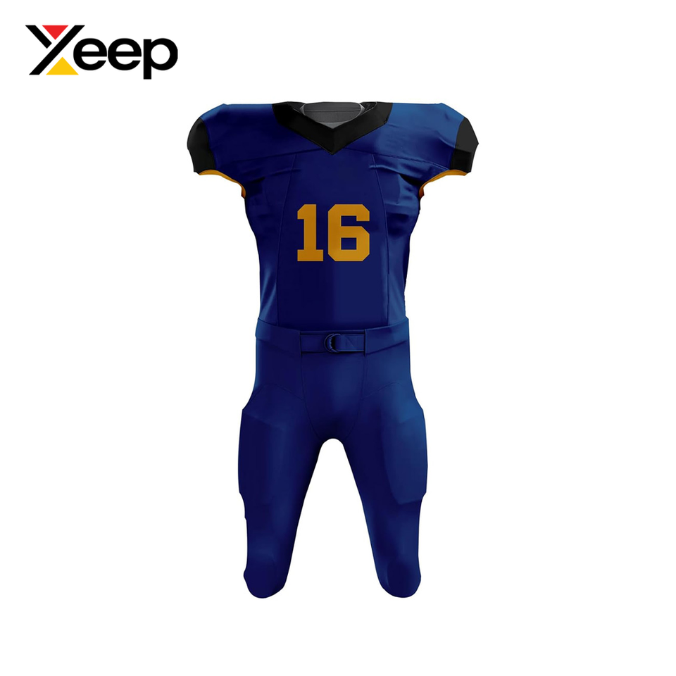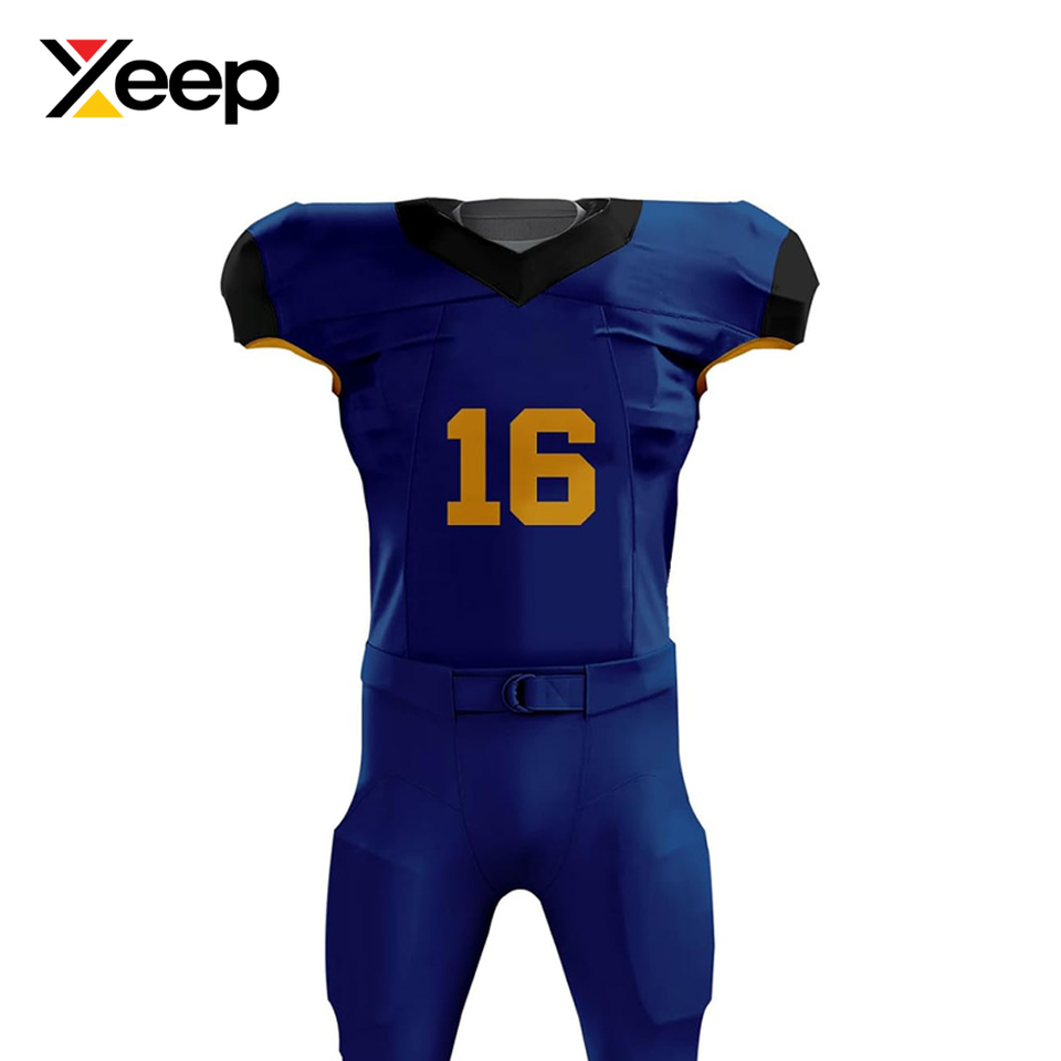 ชุดยูนิฟอร์มอเมริกันฟุตบอลชายแบบปรับแต่งได้ XEEP รุ่น XC-AFU-38 เย็บติดแผ่นรองรับแรงกระแทกในตัว ระบายอากาศได้ดี ผลิตจากโพลีเอสเตอร์ทนทาน ปรับแต่งได้