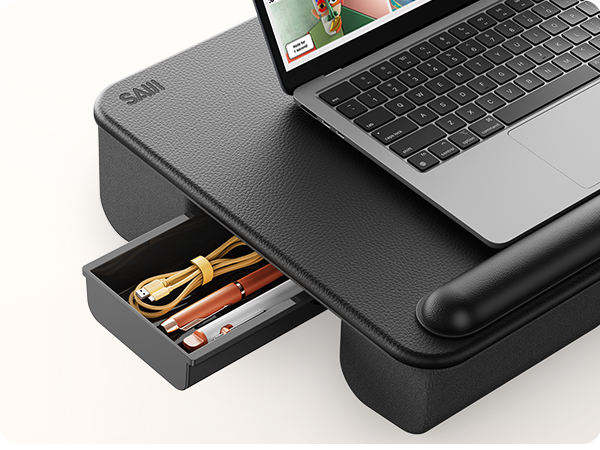 Xgear โต๊ะพับเก็บได้พร้อมเบาะหนัง PU, โต๊ะตักฟองน้ำพร้อมลิ้นชักดีไซน์ดั้งเดิม