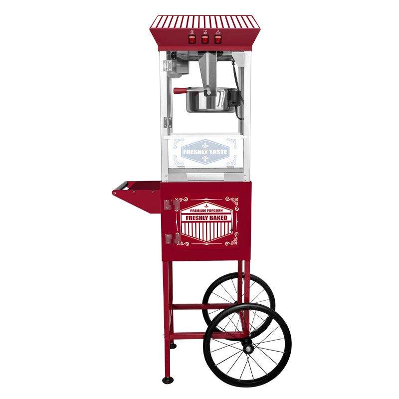 เครื่องทำป๊อปคอร์นสไตล์วินเทจสีแดงบนล้อ XH-P831พร้อมรถเข็นและกาต้มน้ำ12ออนซ์