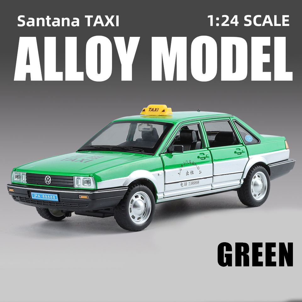 C2455 xhd พร้อมกล่อง Santana TAXI 1/24ไฟดึงด้านหลังรถโมเดลรถโมเดลรถเหล็กหล่อขนาดเล็กของขวัญสำหรับเด็ก kmm oemodm