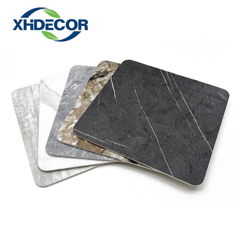 XHDECOR แผ่นพีวีซีบอร์ด UV กันน้ํา สีหินอ่อน สําหรับตกแต่งผนังและเพดานภายใน