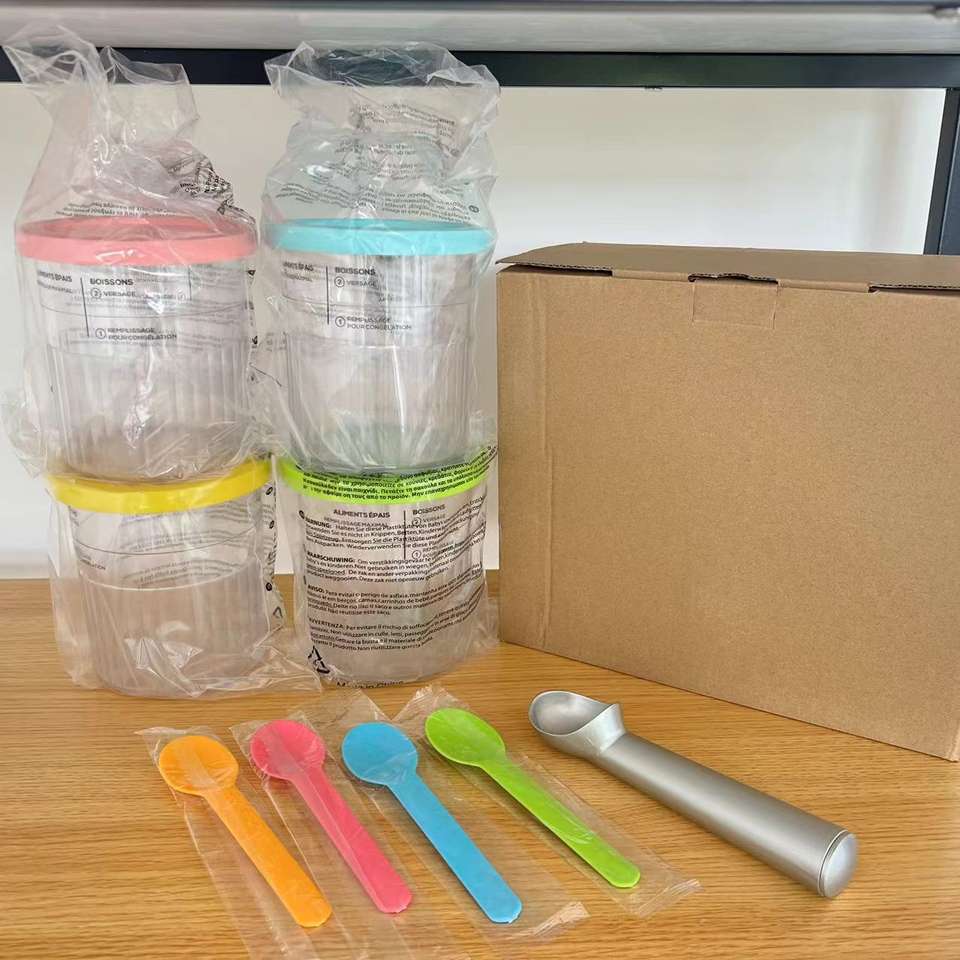 Xhlsub ชุด NC501 NC500ถ้วยไอศกรีมลายคลื่น4ชิ้นสำหรับเตรียมอาหารและกล่องใส่ไอศกรีม