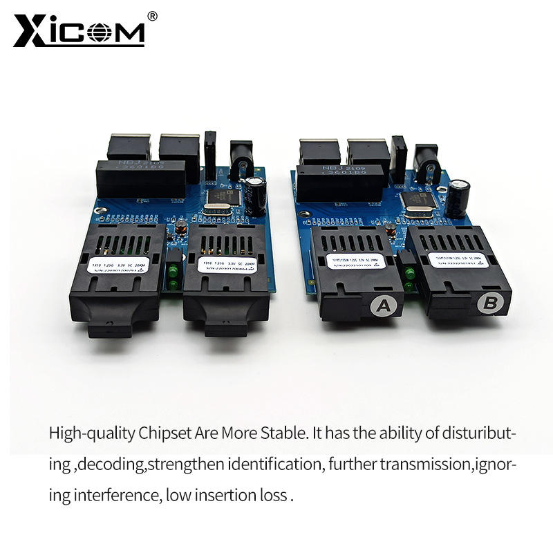 Xicom ตัวรับส่งสัญญาณไฟเบอร์ออปติก1000M กิกะบิตไฟเบอร์2-ไฟเบอร์2-ไฟฟ้า20กม. อินเตอร์เฟซ SC โมดูลสวิตช์แบบดูเพล็กซ์เต็ม