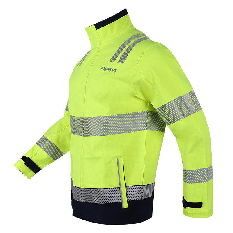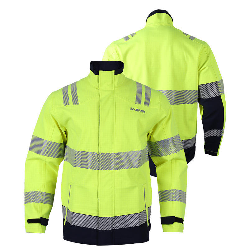 เสื้อแจ็คเก็ตนิรภัยกันไฟ XINKE สีเหลืองสะท้อนแสง ป้องกันการกระแทกไฟฟ้า ทรงปกติ เย็บตะเข็บด้วยความร้อน ชุดทำงานที่มองเห็นได้ชัดเจน