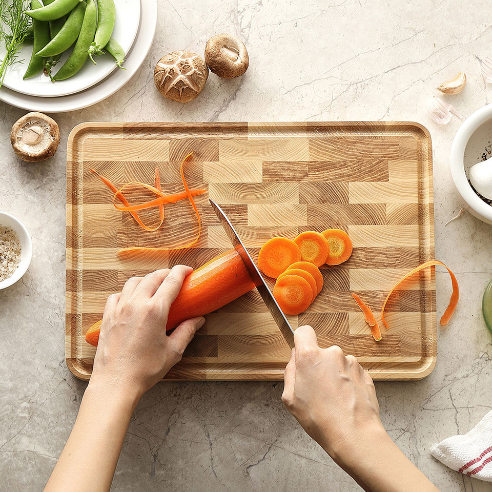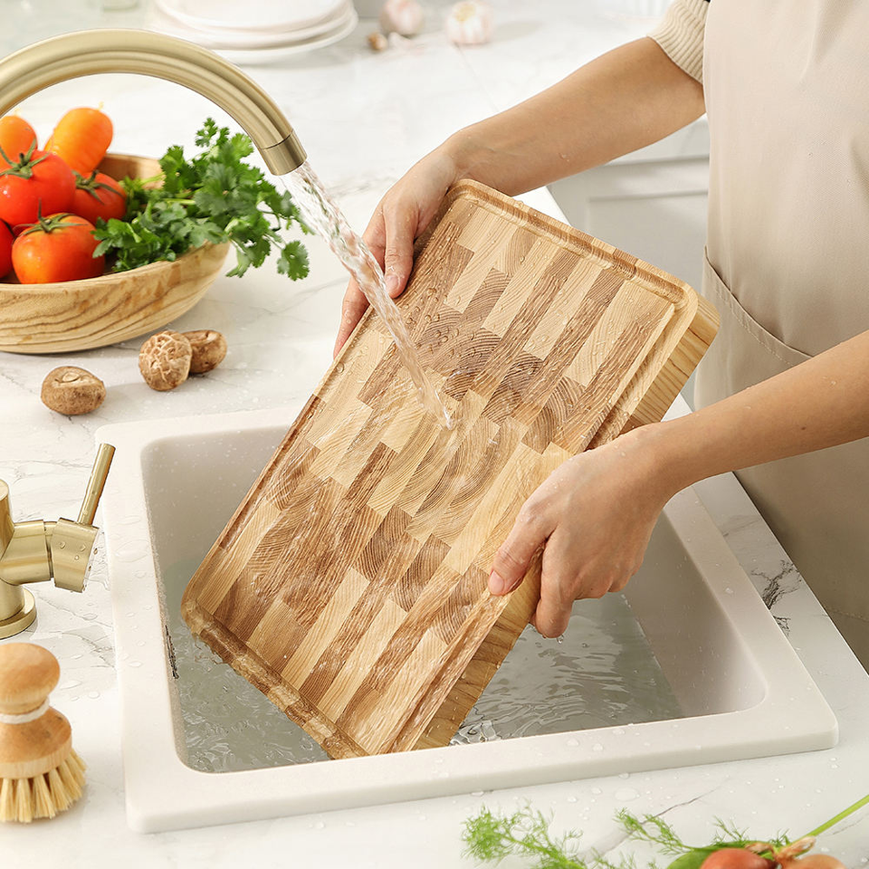 เขียงไม้แอชธรรมชาติ XINZUO ดีไซน์ร่องระบายน้ำ ตะเข็บไร้รอยต่อ กันลื่น ใช้ได้สองด้าน