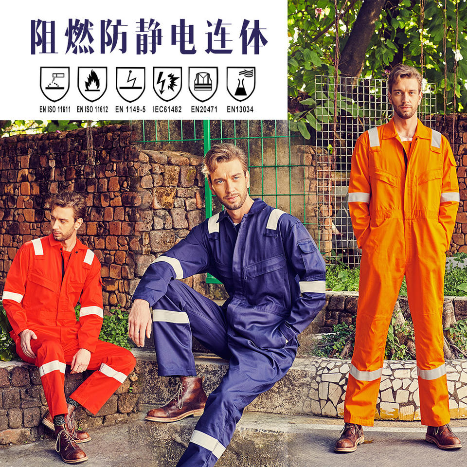 ชุดคลุมป้องกันไฟ XK-50089 ผ้าไนลอนสีน้ำเงินสดและสีแดง สำหรับคนงานเหมืองพลังงาน