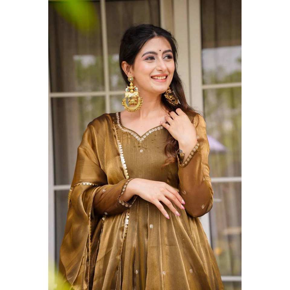 ชุดเดรส Anarkali สำหรับงานปาร์ตี้ไซส์ XL ผ้าชีฟอง ทรงเอไลน์ เอวทรงเอ็มไพร์ พร้อมกางเกงและผ้าคลุมไหล่