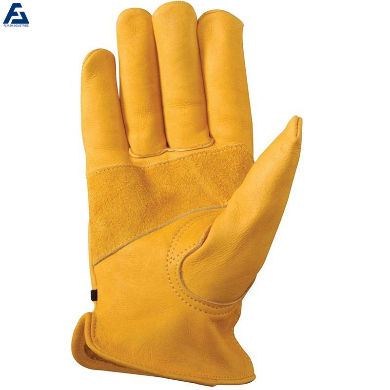 ถุงมือนิรภัยหนังวัวยาวแบบแยกสำหรับใช้ในงานโพลีเอสเตอร์ผ้าฝ้าย