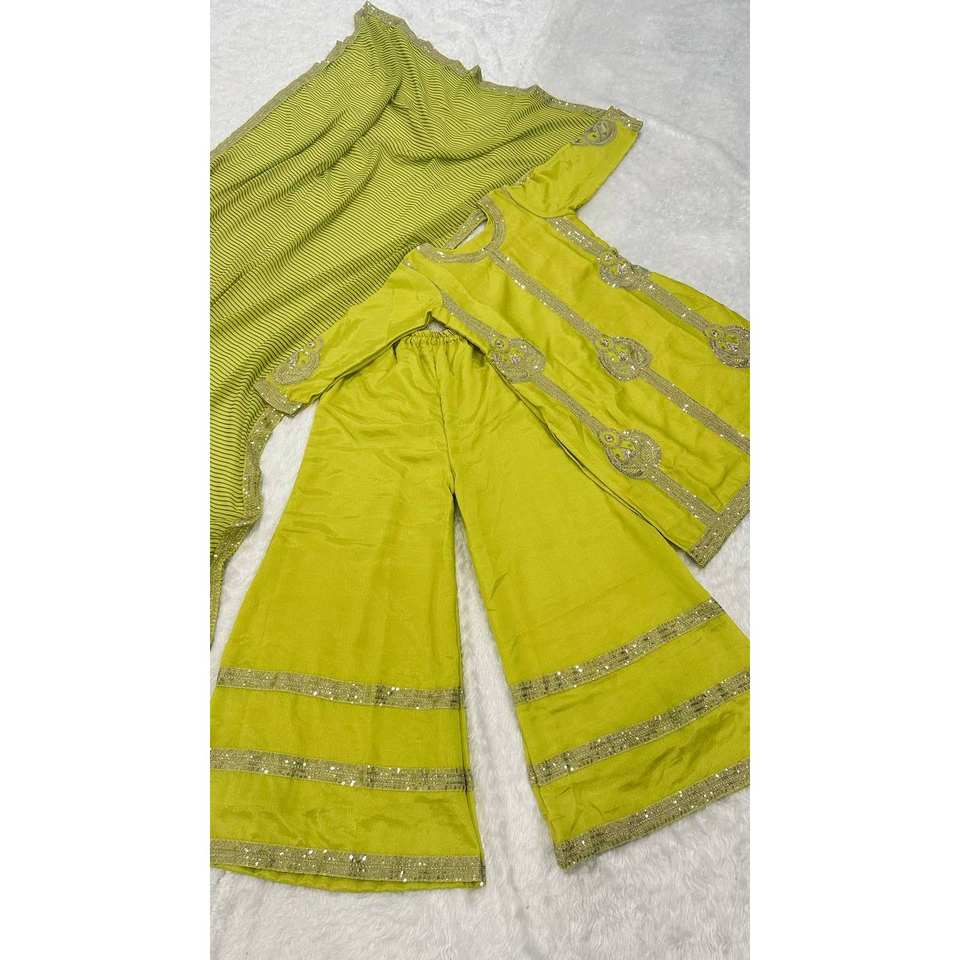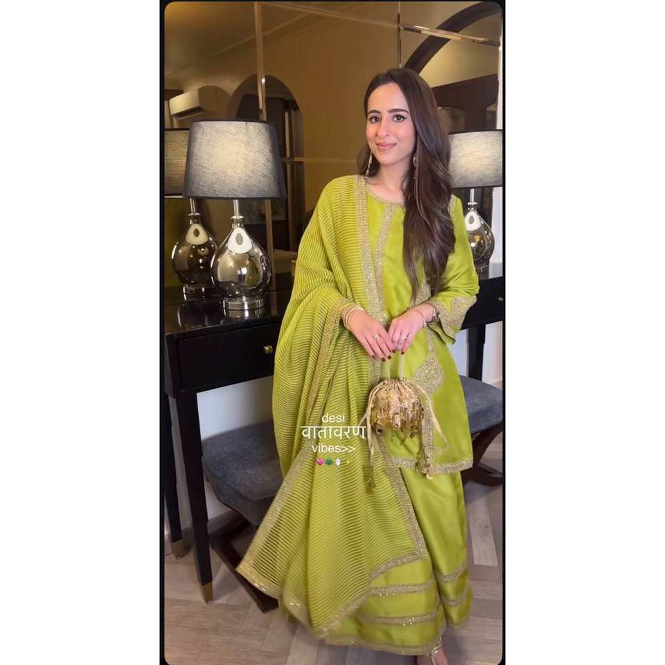 Lime XL Size Satin Women's Party Suit Set with Sequins & Zari Work 100% Polyester for Elegant Evening Wear
