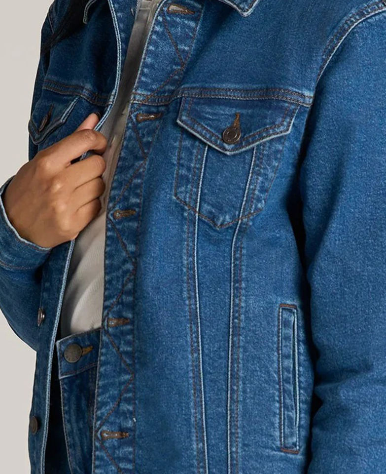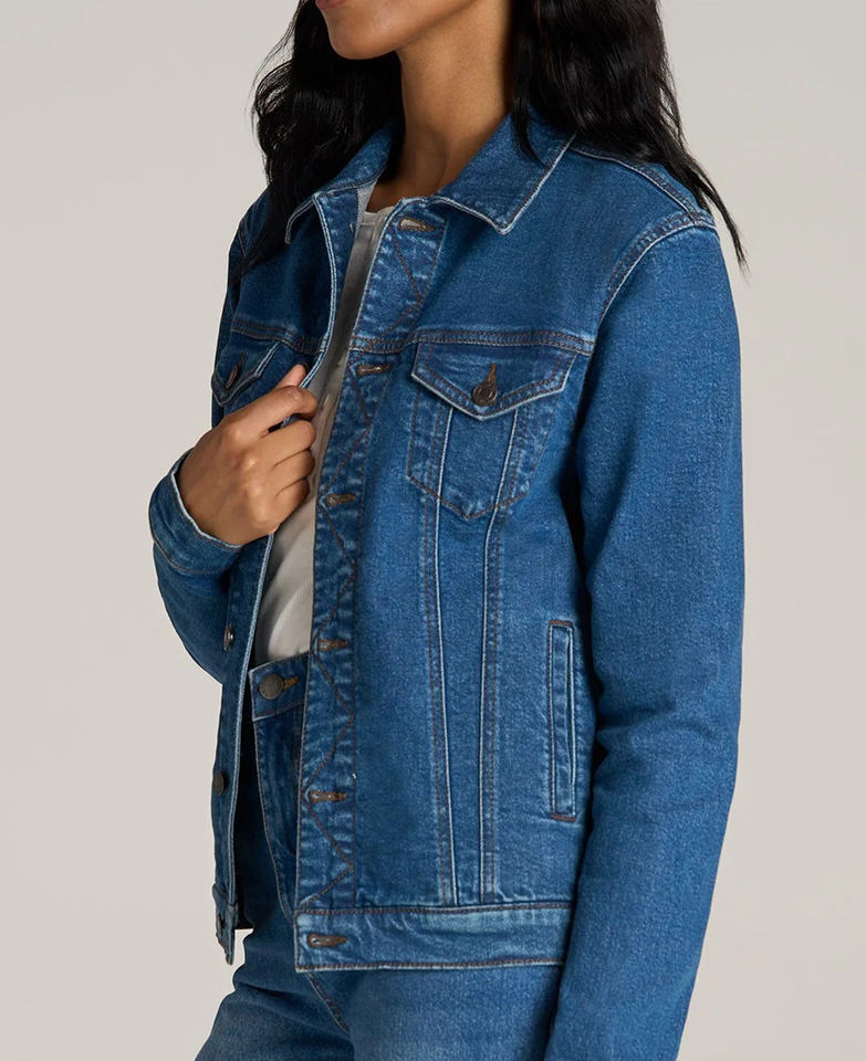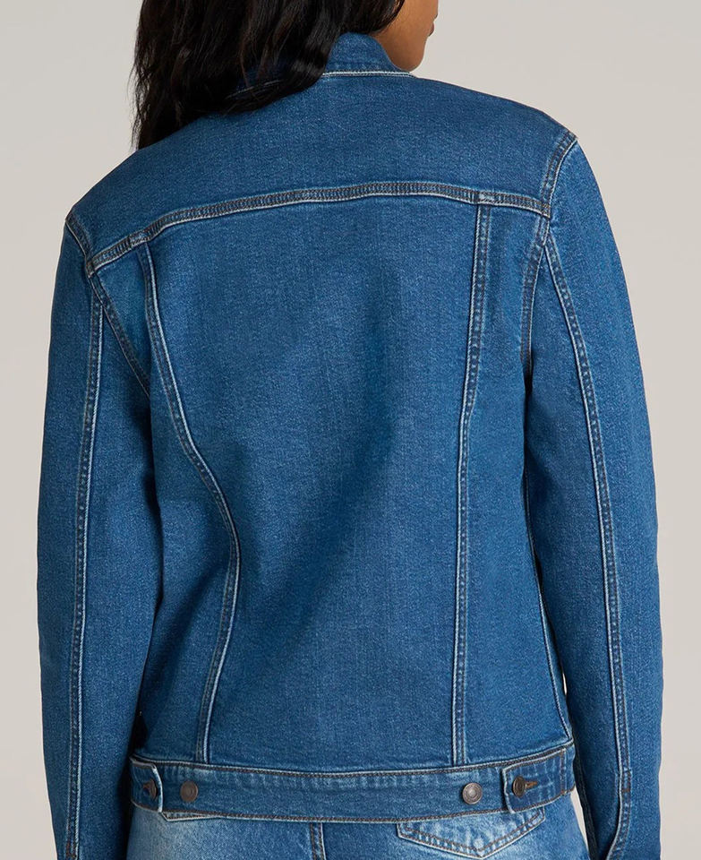 XL Size Women's Standard Thickness Denim Jackets Mandarin Collar Breathable Button Vintage Style Washed Finish Autumn All