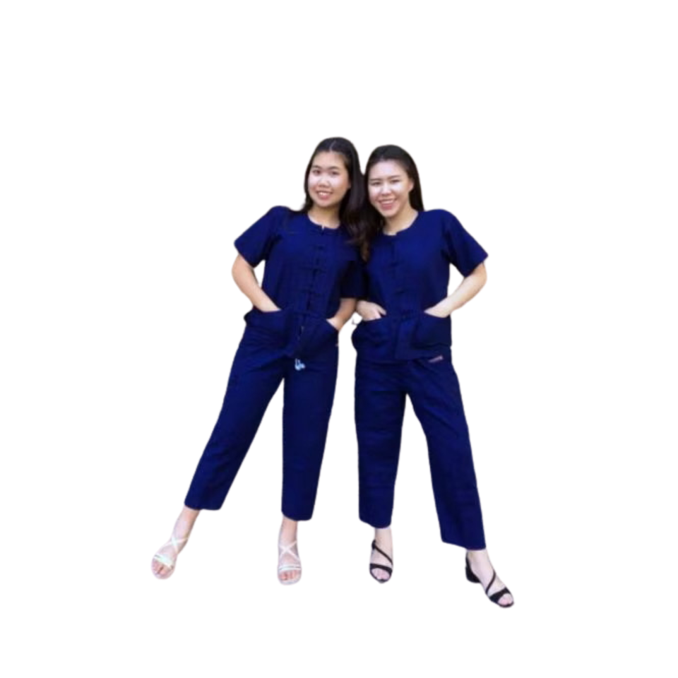 กางเกงครอปแบบชาวไทย XL เสื้อผ้าผ้าฝ้ายแบบถักมือความยาว3/4