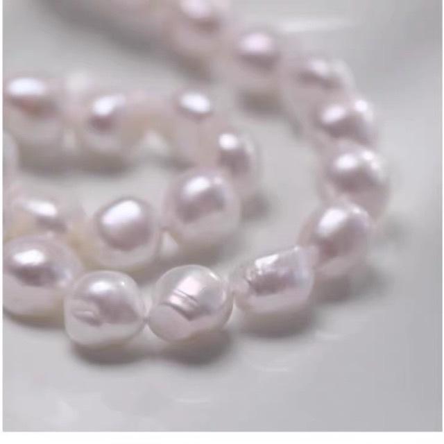 สร้อยคอมุกบาร็อคทรงคลาสสิก XL42-2 เม็ดใหญ่ น้ำจืด แสงเงาธรรมชาติ แท้ พร้อมสายคล้องคอ S