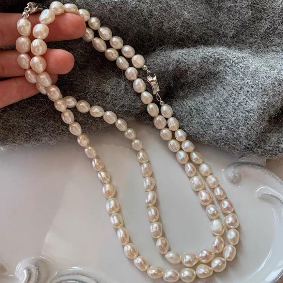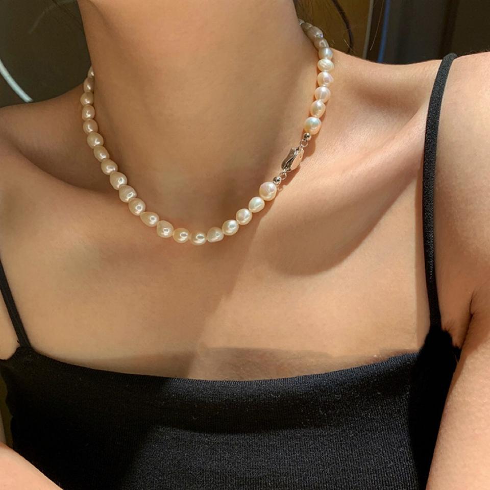 สร้อยคอมุกน้ำจืดทรงบาร็อคธรรมชาติ XL42-6 สำหรับผู้หญิง ดีไซน์หรูหราแบบเฉพาะตัว พร้อมตัวล็อคแบบหยวนเป่า ขนาด XL