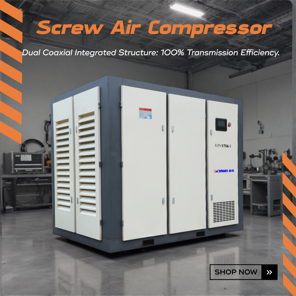เครื่องอัดอากาศแบบสกรูระบายความร้อนด้วยอากาศสองระดับ XLPM150A-IID 110 กิโลวัตต์ 150 แรงม้า ประหยัดพลังงาน เสียงเบา