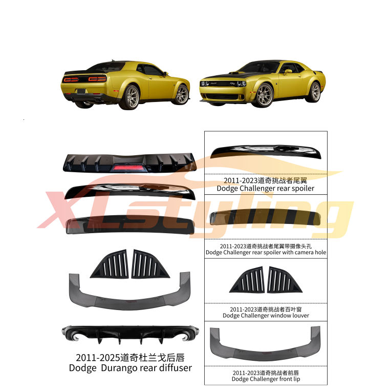 XLstyling New Arrival High Quality Car Bumpers Bodykit Front Splitter Lip Spoiler Rear Diffuser for Camaro Challenger