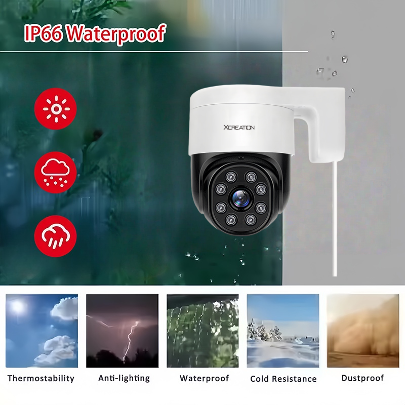 มนุษย์การติดตามการเคลื่อนไหว, ในตอนกลางคืน, การตรวจจับการเคลื่อนไหว, เสียง, กันน้ำ / ฝนและแดด, PAN-TILT, 2-Way Audioคุณสมบัติพิเศษ