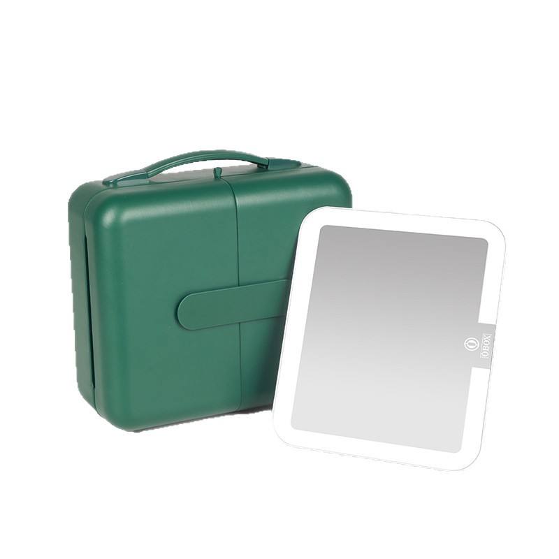 กระเป๋าจัดระเบียบเครื่องสำอาง XOBO สีเขียว แบบพกพา สำหรับเดินทาง พร้อมกระจก ดีไซน์กันน้ำหลายชั้น