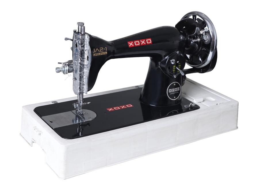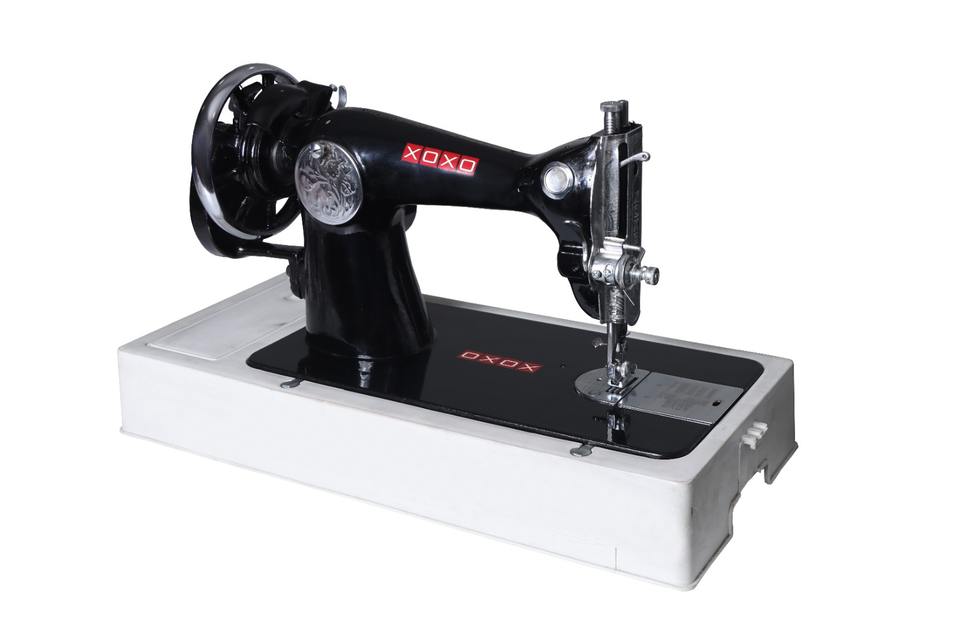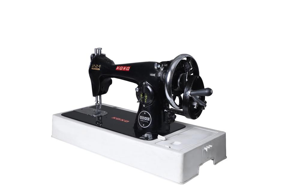 จักรเย็บผ้า XOXO แบบใช้มือหมุน ระบบเย็บแบบล็อคสติทช์ โครงสร้างแบบเตียงราบ ระบบป้อนผ้าด้วยมือ โรงงานผลิตใหม่