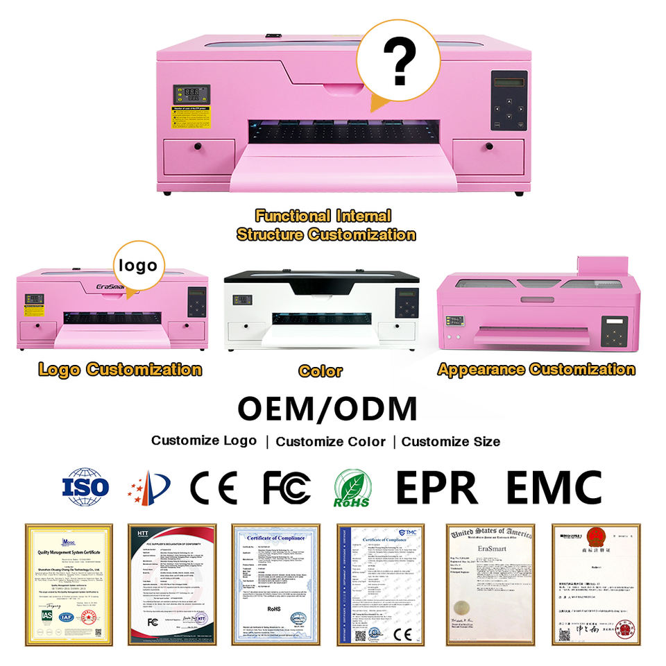เครื่องพิมพ์ฟิล์ม PET ดิจิทัล XP600 A3ขนาด13นิ้วเตาอบสีชมพูพร้อมม้วนอัตโนมัติขนาด300มม. สำหรับการพิมพ์สิ่งทอ