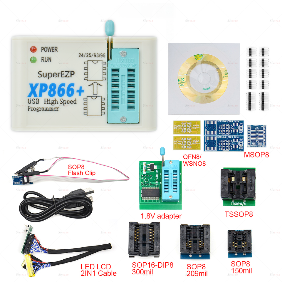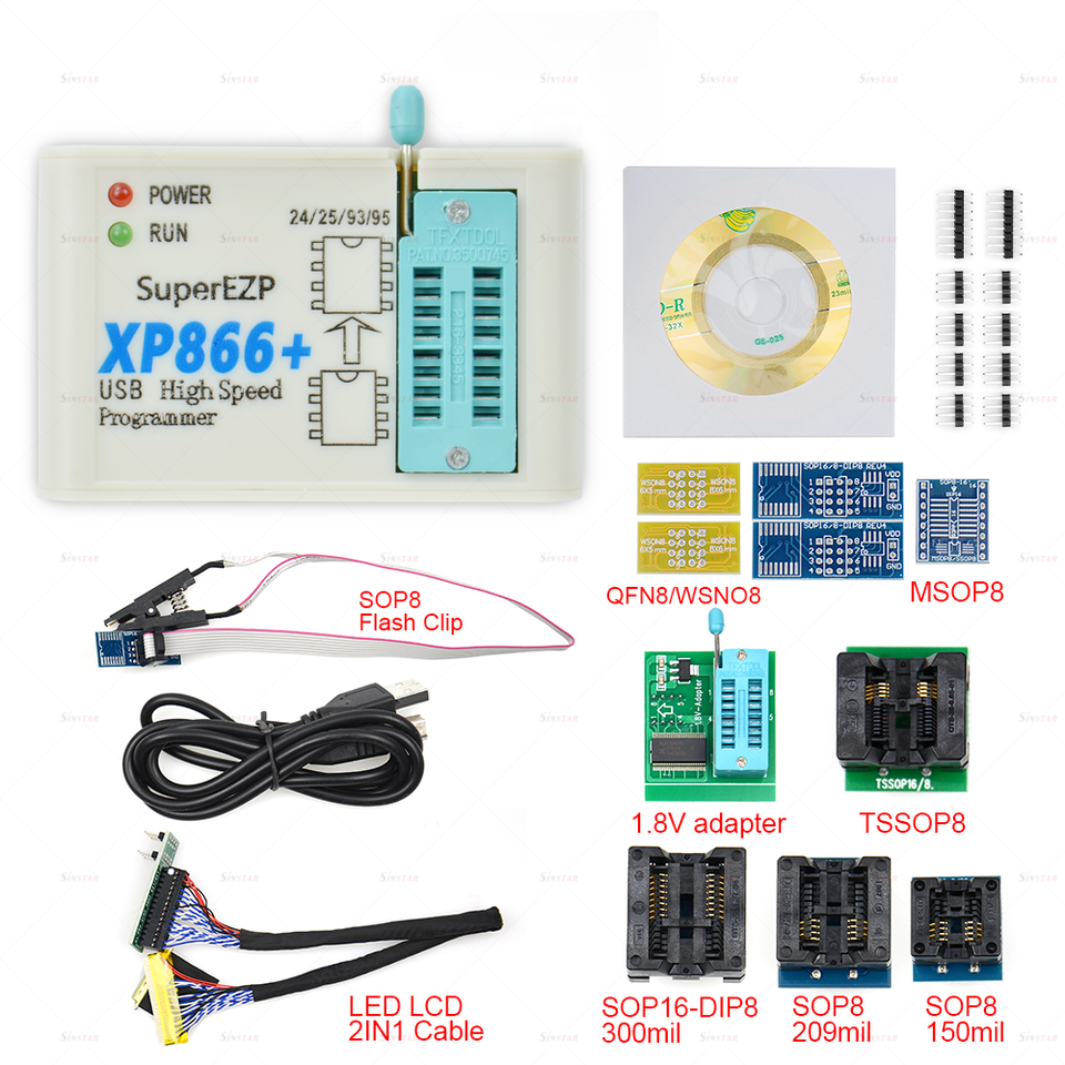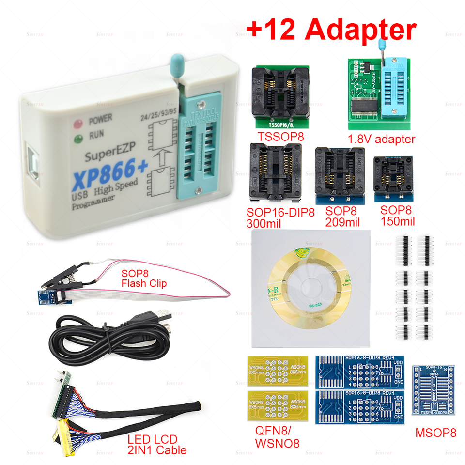 เครื่องโปรแกรม XP866 USB SPI ชุดเต็ม + อะแดปเตอร์ 15 ชิ้น รองรับ Sop8/16 สำหรับ 24 25 93 95 EEPROM Flash Bios Minipro