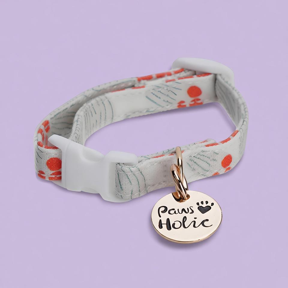 ปลอกคอสุนัขไซส์ XS ดีไซน์หรูหราทันสมัย ผลิตจากผ้าฝ้ายเนื้อนุ่ม พิมพ์ลายสวยงาม ทนทาน สวมใส่สบาย เหมาะสำหรับพาสุนัขเดินเล่น พร้อมบริการสลักชื่อสัตว์เลี้ยง