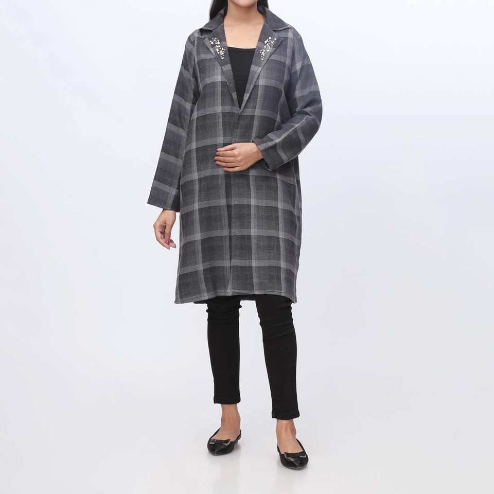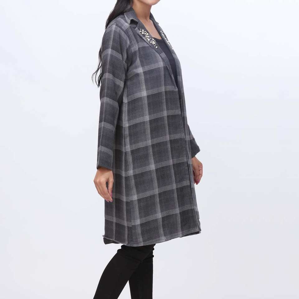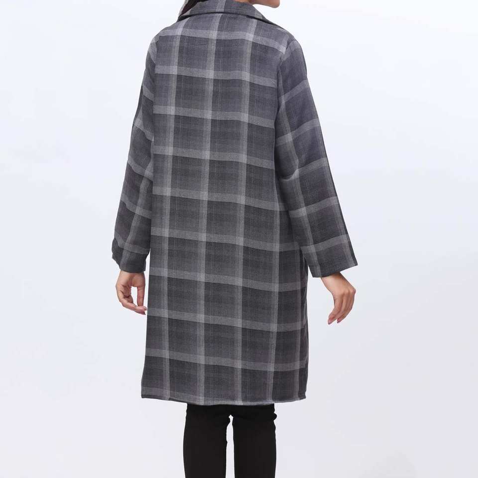 เสื้อโค้ทผ้าสักหลาดลายตารางสีเทา ไซส์ XS รุ่น Pret น้ำหนัก 500 กรัม รหัส PW3194