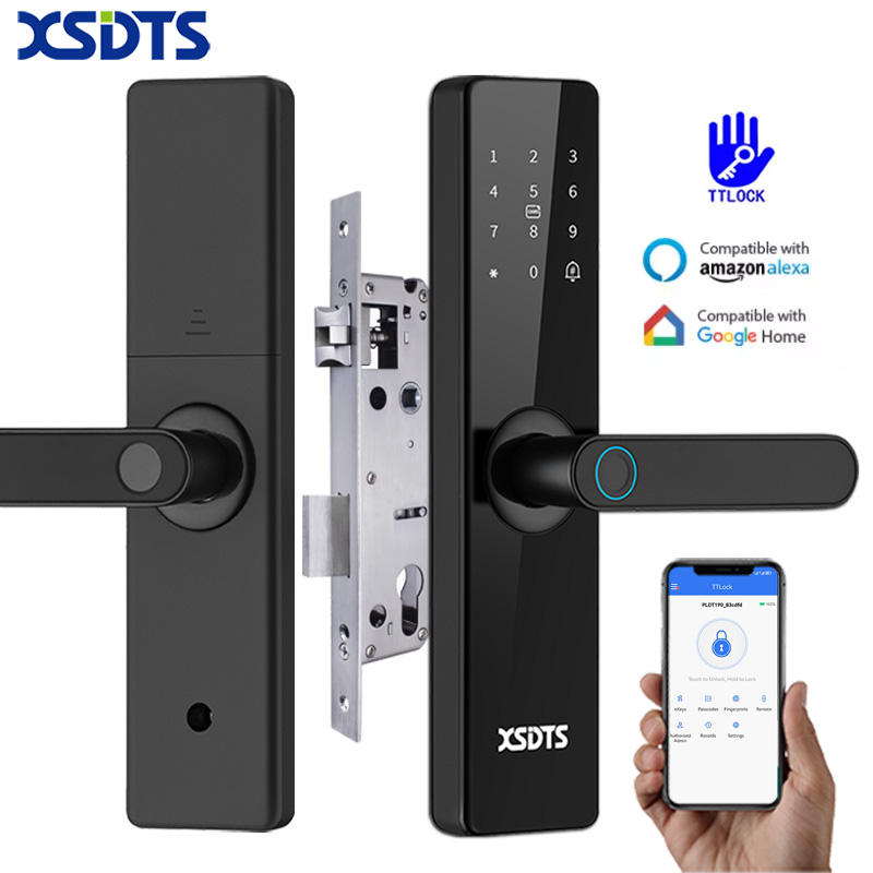 XSDTS F17-TT/Tuya สมาร์ทล็อคประตู ปลดล็อคด้วยลายนิ้วมือ แอป TT Lock ควบคุมระยะไกล กุญแจดิจิตอลแบบไร้กุญแจ ระบบเข้าออกอัจฉริยะ ปลอดภัยสำหรับบ้านอัจฉริยะ
