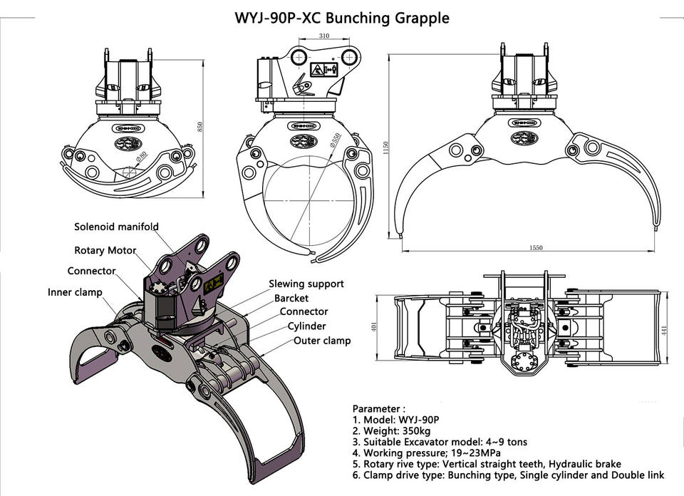 ตัวจับไม้ไฮดรอลิก XUVOL MF36 สำหรับรถขุดขนาดเล็ก ใช้สำหรับงานตัดไม้ หมุนได้ ใช้ในงานก่อสร้างไม้ อะไหล่เครื่องจักร