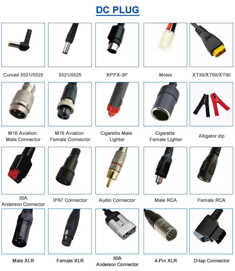 Dc Cable Plug:2.1*5.5mm/M16/XT30/2.5*5.5mm /Custom