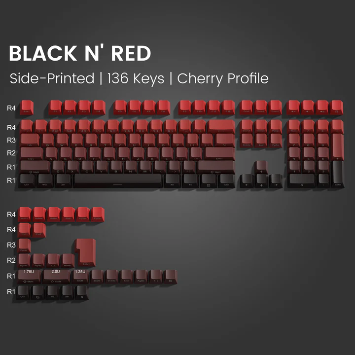 คีย์แคป XVX PBT 136 ปุ่ม พิมพ์ด้านข้าง สีสันไล่ระดับ ไฟ RGB Backlit คีย์แคปแบบ Double Shot สำหรับคีย์บอร์ดแล็ปท็อป DIY สำหรับเกมเมอร์
