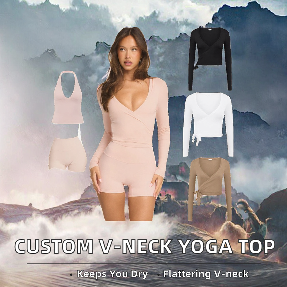 เสื้อยืดออกกำลังกายผู้หญิง XW-BM6620 แบบสั่งทำพิเศษ ระบายอากาศได้ดี ไซส์ใหญ่ คอวี แขนยาว ทรงเข้ารูป เหมาะสำหรับยิม โยคะ และสวมใส่ทั่วไป