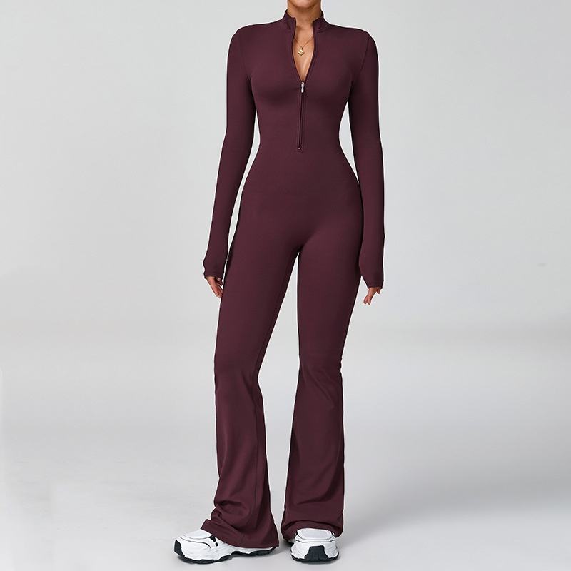 ชุดออกกำลังกายผู้หญิงแบบขายส่ง XW-YW1013L บอดี้สูทซิปยาว ชุดโยคะแบบชิ้นเดียว ทรงบาน ชุดออกกำลังกายฟิตเนส แห้งเร็ว
