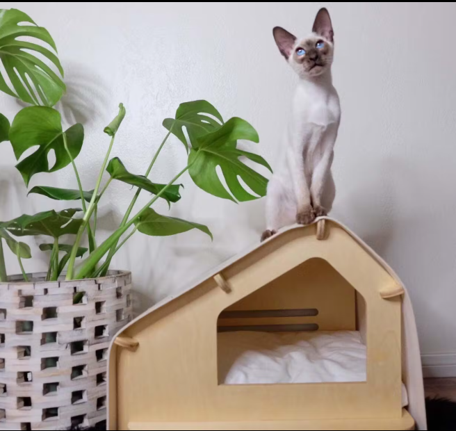 บ้านแมวไม้ XWOOD รุ่นโมเดิร์น สำหรับใช้ภายในอาคาร ที่หลบซ่อนแสนสบาย ดีไซน์แผงถอดประกอบได้ ทำจากไม้สนธรรมชาติ แข็งแรงทนทาน รุ่น AC06