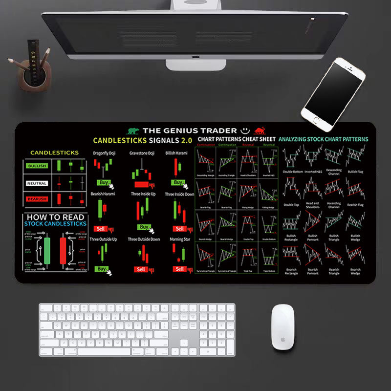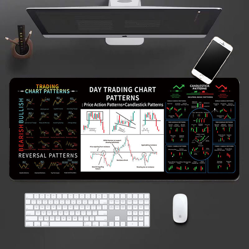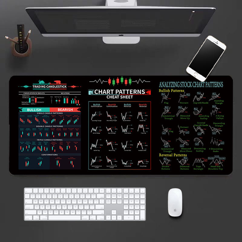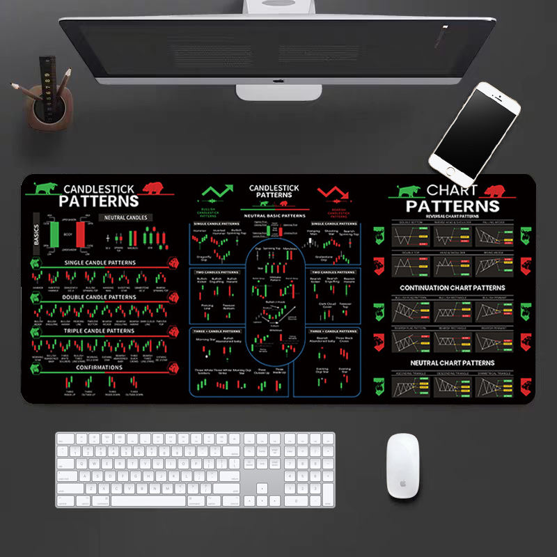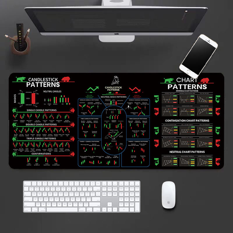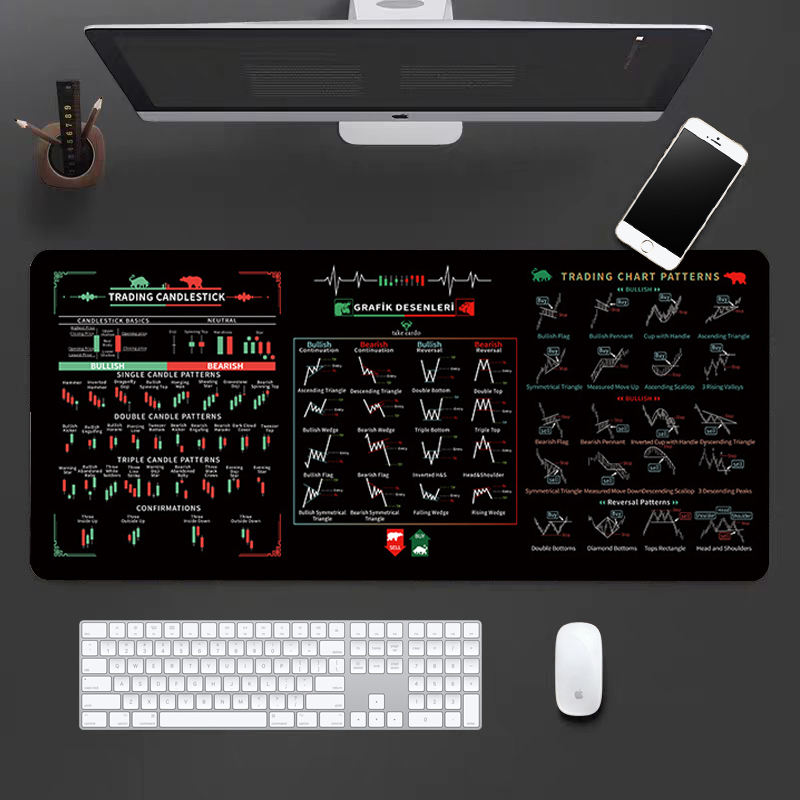 แผ่นรองเมาส์รูปแบบกราฟแท่งเทียนขนาด XXL แผ่นรองโต๊ะสำหรับนักเทรด แผ่นอ้างอิงการวิเคราะห์ทางเทคนิค สำหรับนักเทรดและนักลงทุน