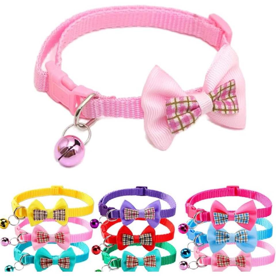 ปลอกคอสุนัขพันธุ์เล็ก ไซส์เดียว สีชมพู โบว์ผูก ปรับได้ ไนลอน ตกแต่งด้วยลูกไม้ มีกระดิ่ง นุ่มสบาย สำหรับสุนัขตัวเมีย
