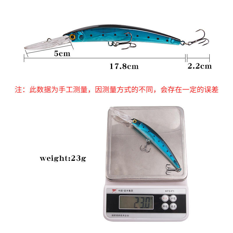 เหยื่อปลอมแบบลอยน้ำ XY-600 ขนาด 20 ซม. น้ำหนัก 23 กรัม พร้อมลูกปัดเสียงดัง ตะขอสามทางเสริมความแข็งแรง สำหรับตกปลาทะเล