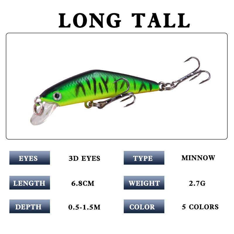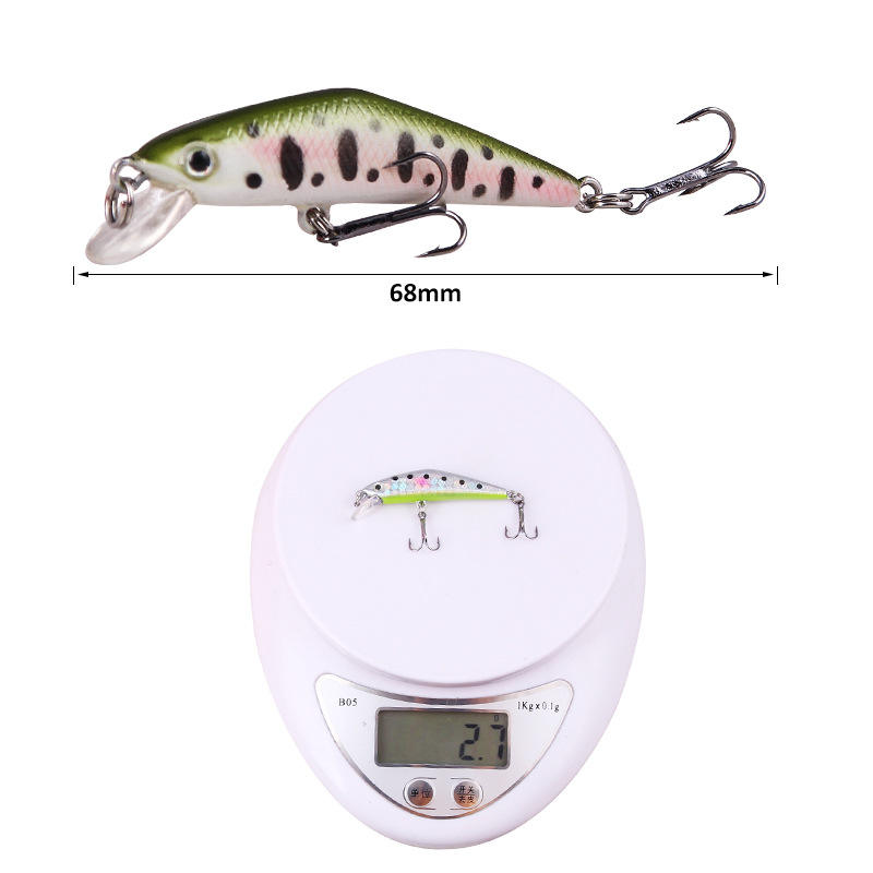 เหยื่อปลอม XY-74 รุ่นมินโนว์ ขนาด 68 มม. น้ำหนัก 2.7 กรัม แบบจมช้า สำหรับตกปลาเพิร์ช
