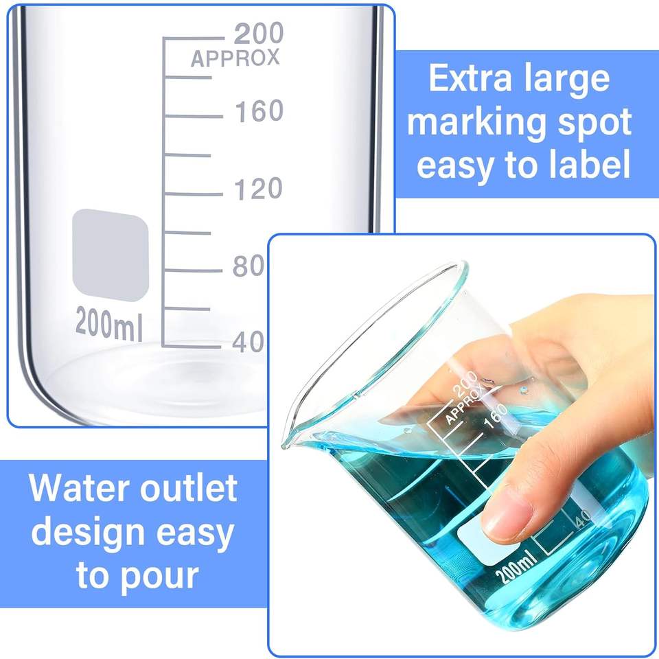 แก้วบอโรซิลิเกต200มล. XZ ถ้วยตวง3.3แบบใสสำหรับห้องปฏิบัติการหรือใช้ในครัวเรือน